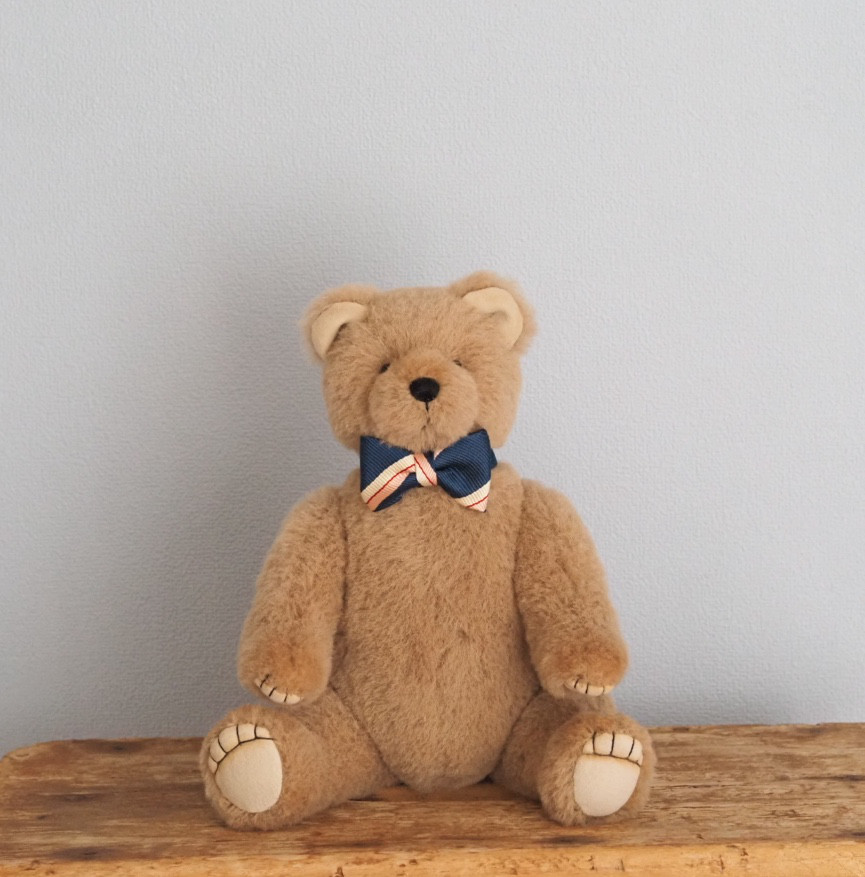 手をあげるとパウが見えるデザインでとても愛らしいベアです。ブルーベースの蝶ネクタイをポイントに♡